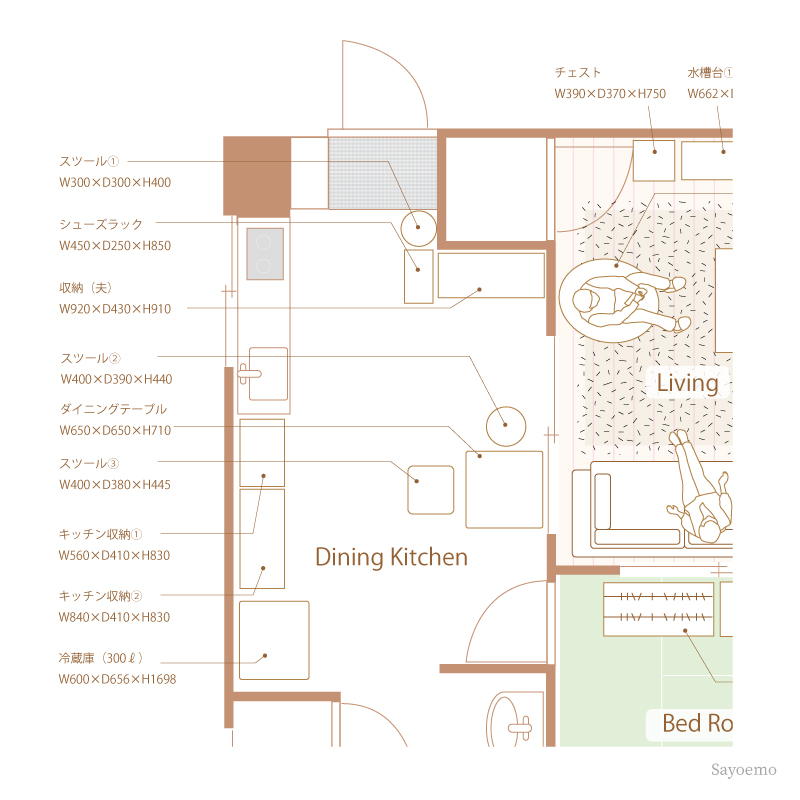 こんにちは、築30年賃貸マンションに暮らすサヨエモです。工務店勤務を経て、インテリアショップで働く私の経験も踏まえて、今日は狭いDKのレイアウトのポイントについてお話しします。