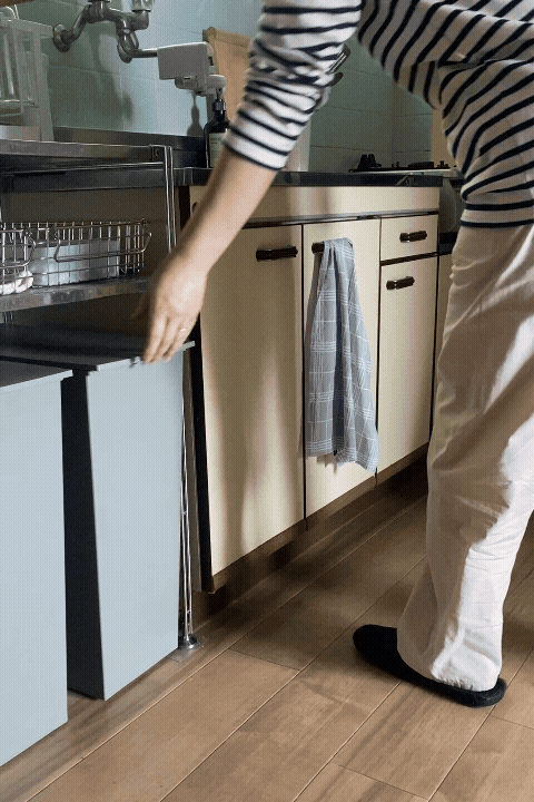 シェルフの内側に少しゆとりが生まれるため、ゴミ箱出し入れがとてもスムーズで、毎日ストレスなく使えています。