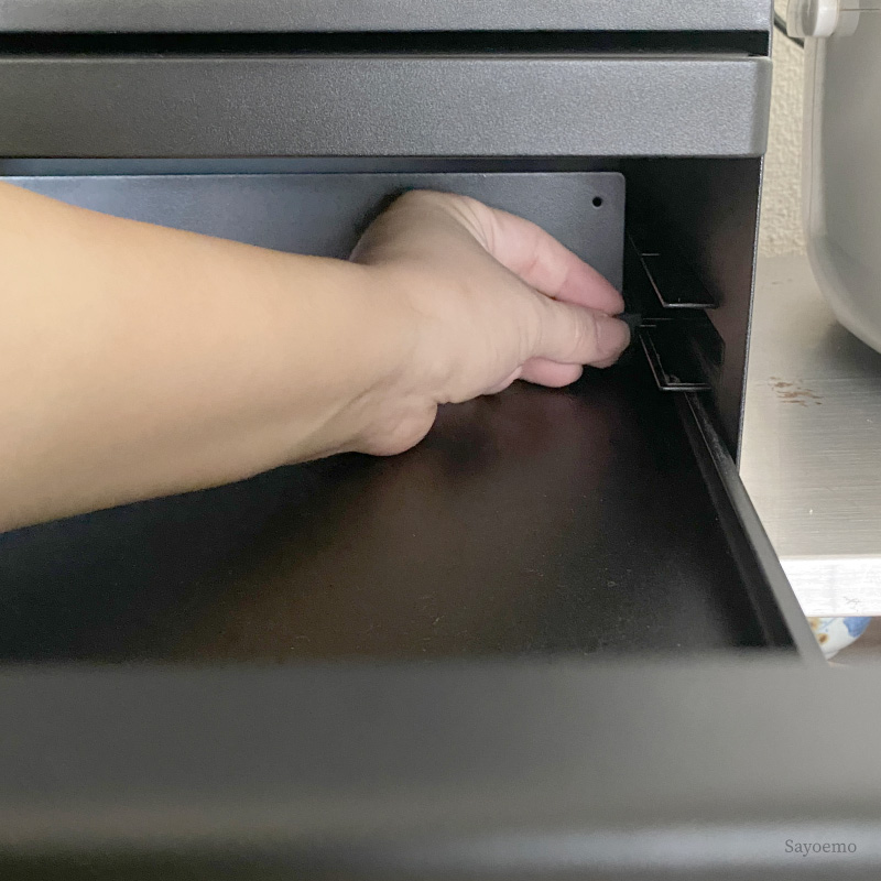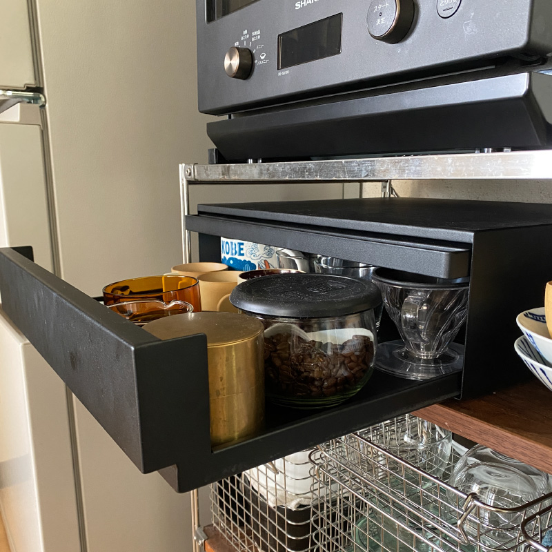 特に、引き出しのほうは、中にコーヒーグッズなどが入っていて多少重さがあるため、開け閉めの際に両サイドが引っかかるような感覚が強くあります。(ラップなど軽いものを収納している場合は、比較的スムーズでした)