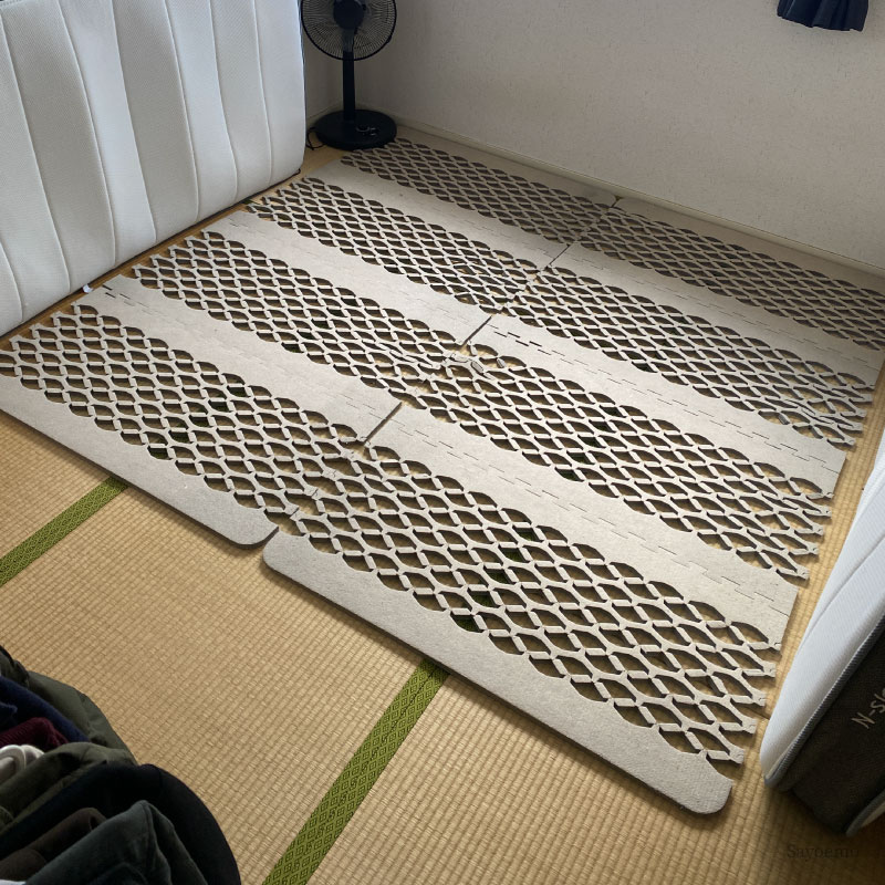 このマットを購入した最大の理由は、マットレスと畳の間に敷くことで、湿気を物理的にシャットアウトできる点です。ベルオアシス素材が強力に湿気を吸い取り、すのこ形状がマット下の通気性を確保してくれます。