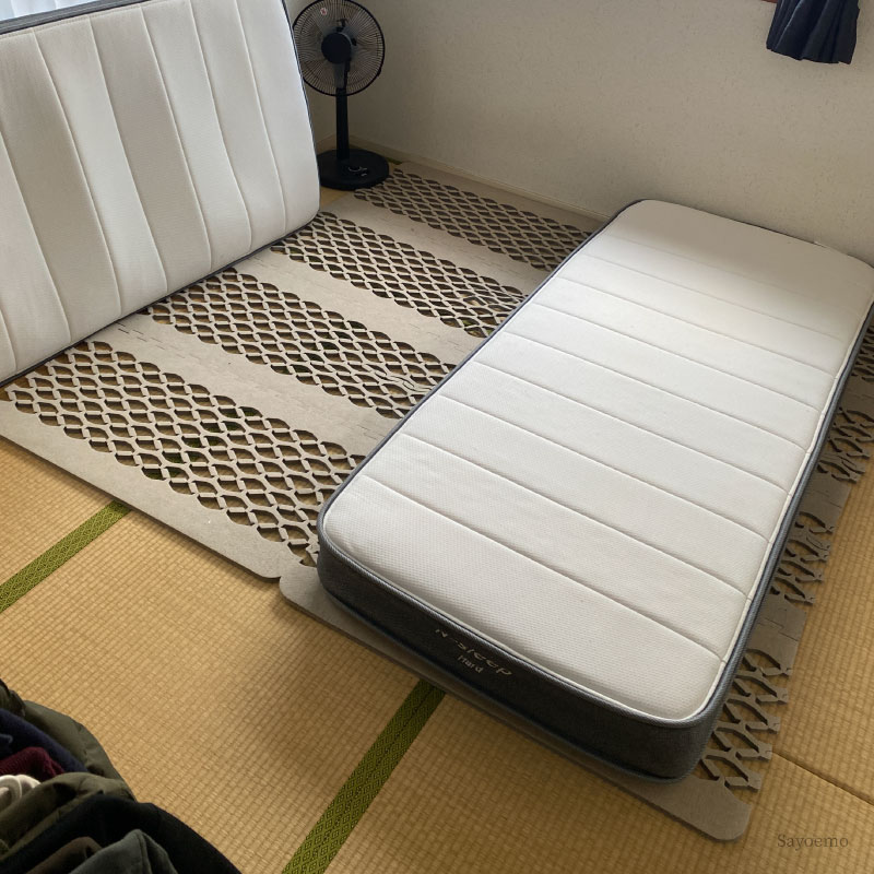 正直、見た目は少し生活感が出てしまいます。ただ、そのおかげで4年間ずっとマットレスの底にも畳にもカビが一切生えていません。