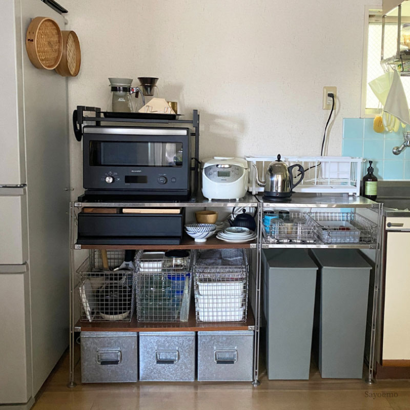 狭いキッチンでもスペースを最大限に活用でき、自分好みにカスタマイズできる柔軟性は、大きな魅力です。見た目もシンプルで、どんなインテリアにも馴染みます。