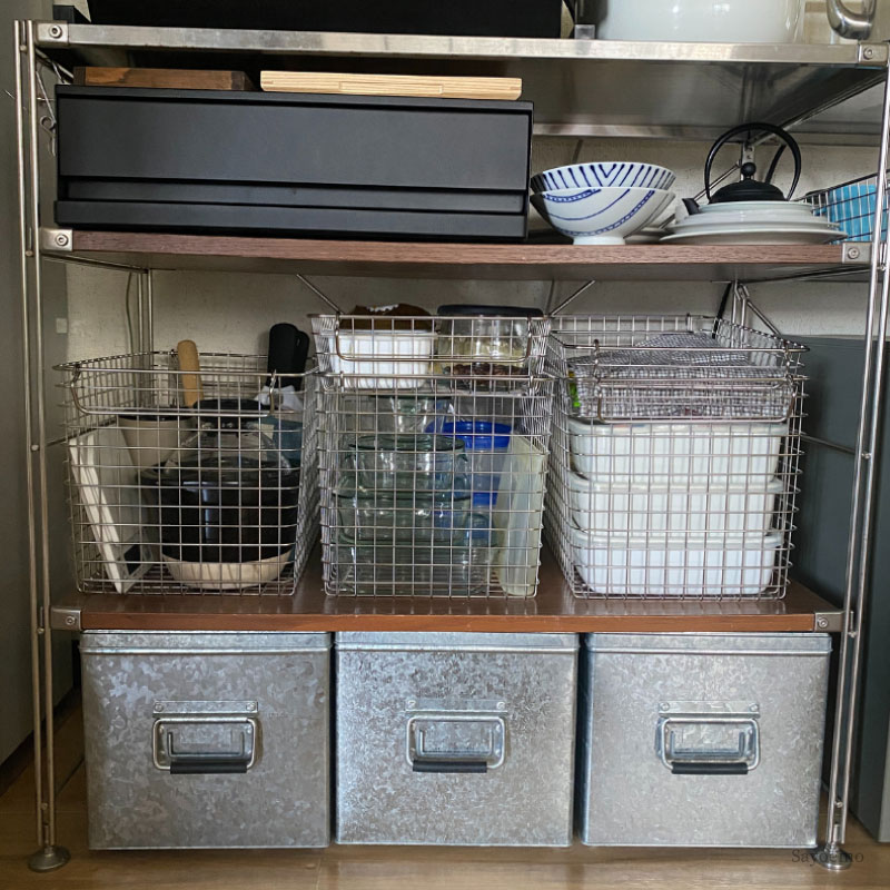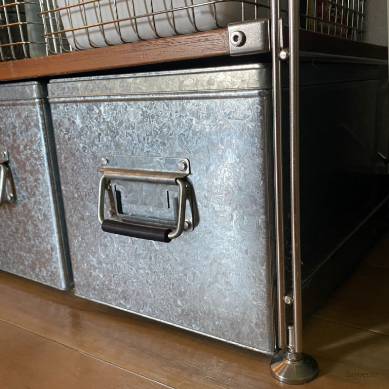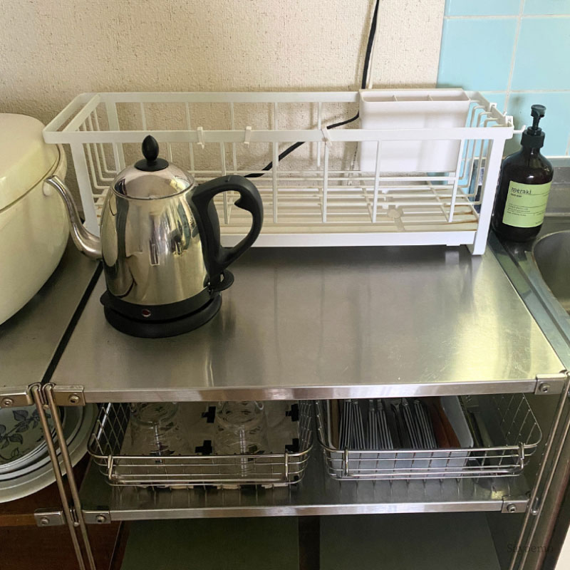 ステンレスの棚板であれば、重さに強く、引き出しやモノの出し入れで傷を気にせずスムーズに使えたはずなので、全てステンレスにすればよかったと後悔しています。